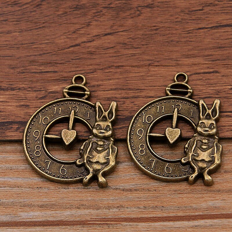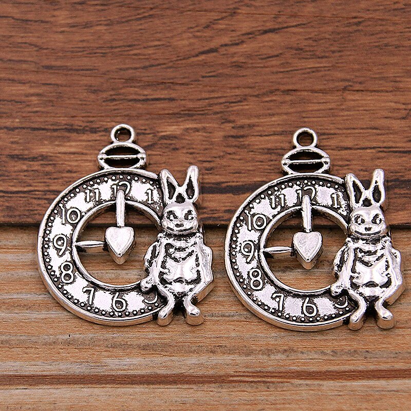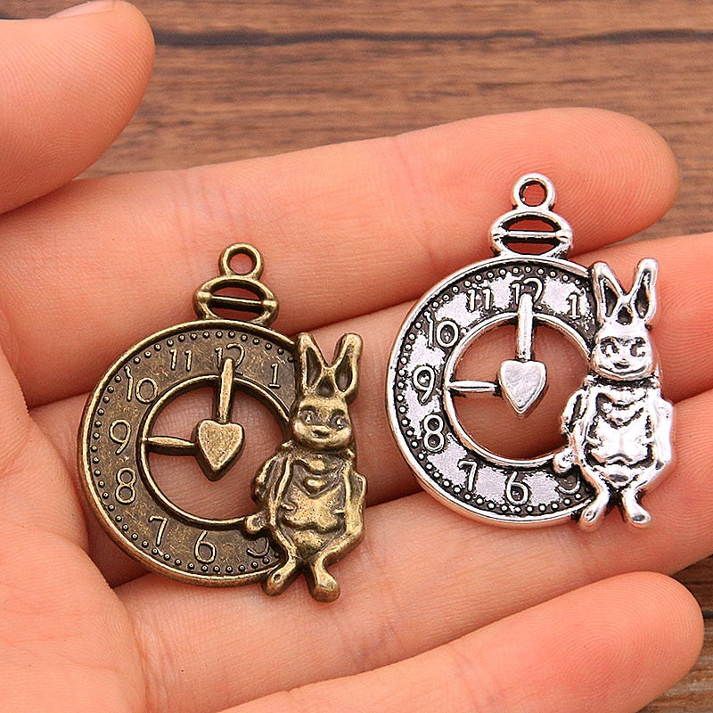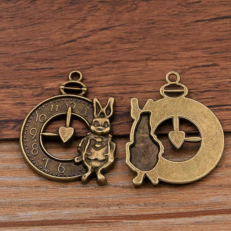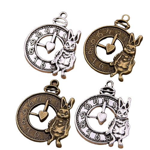 Fabriquez de petits bijoux ou ajoutez à votre tenue une Breloque en forme d' Horloge sur le thème du Lapin Blanc.