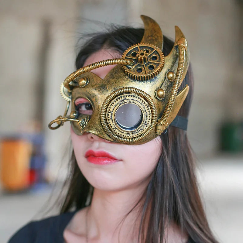 Le Demi Masque pour des costumes de Carnaval, d'Halloween ou de cosplay pour un look Steampunk détonnant.