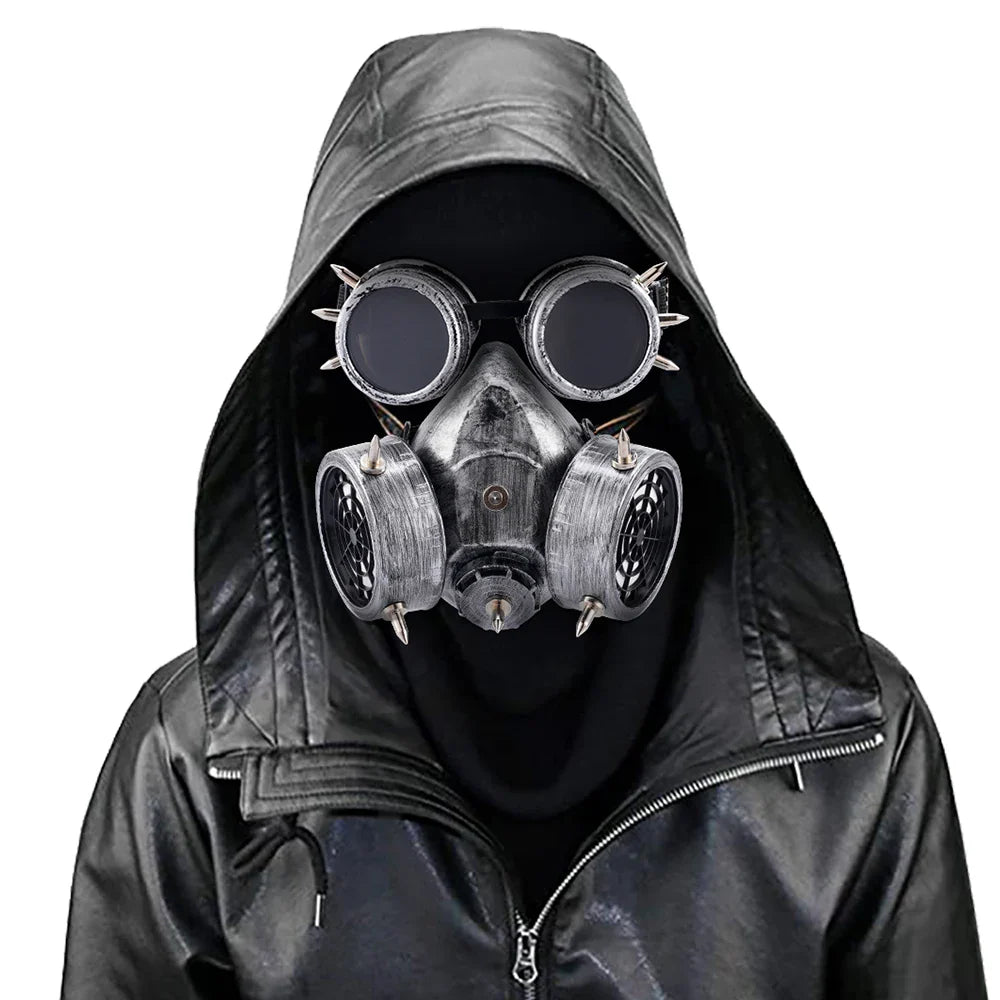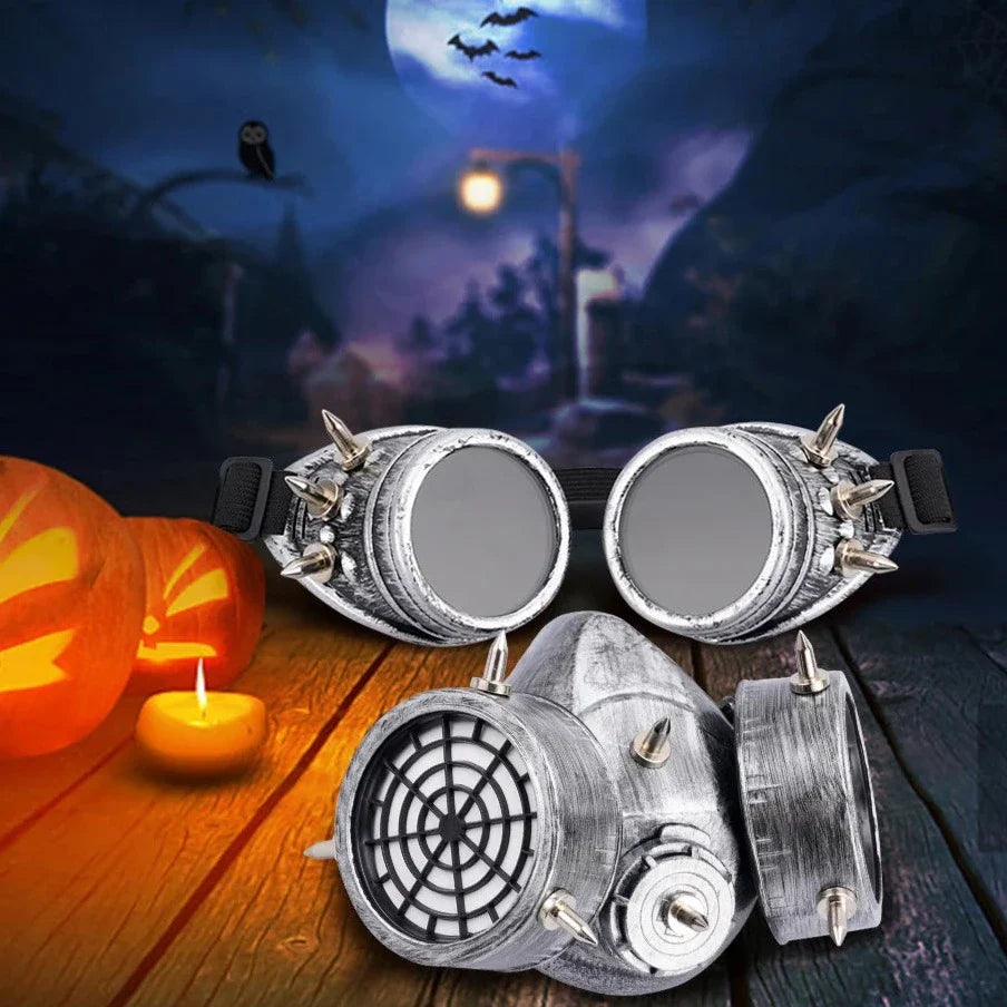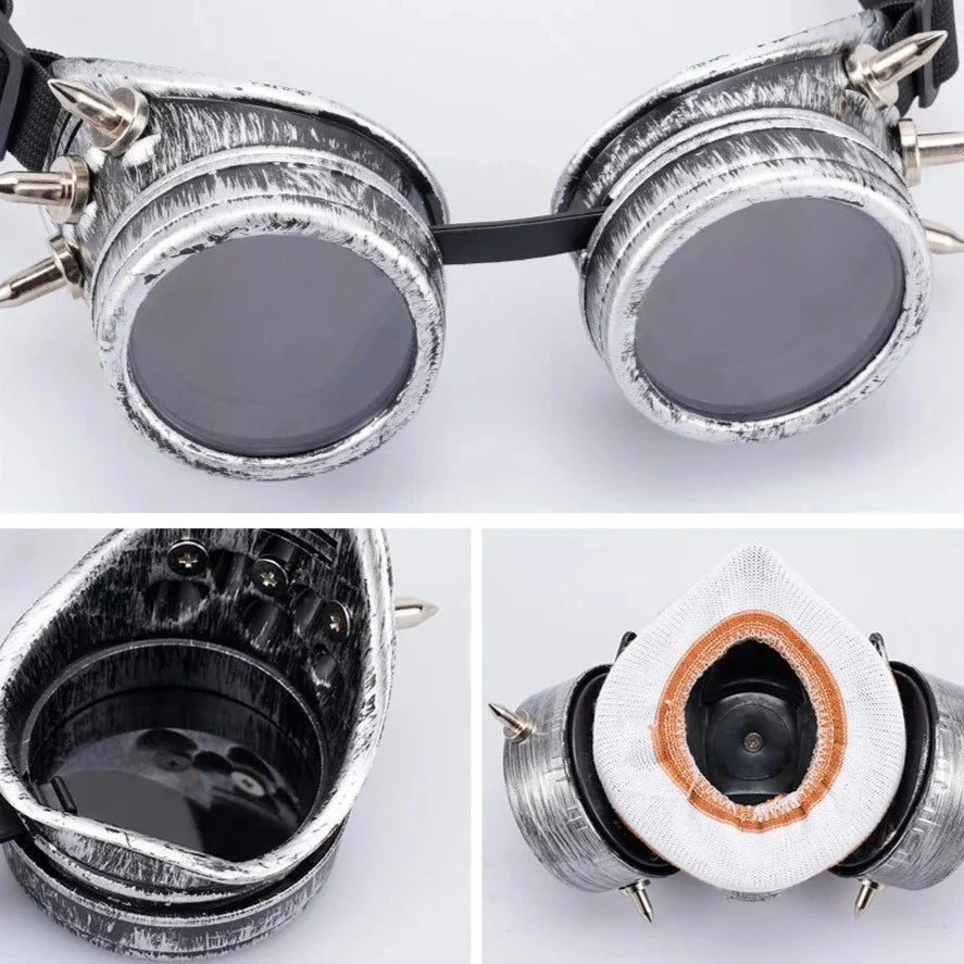 Le masque à gaz est accompagné de lunettes de soudeur pour un kit Atompunk détonant.