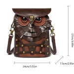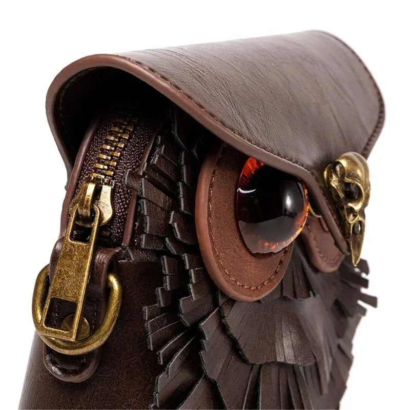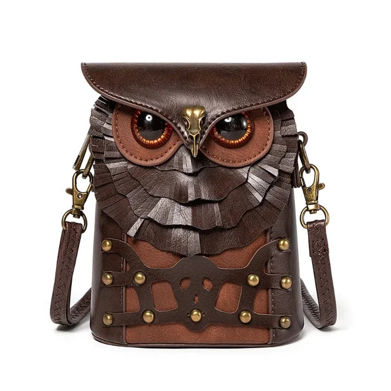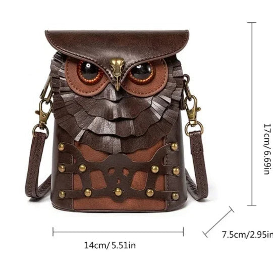 Sac à bandoulière en cuir – Hiboux Steampunk - mini besace rétro