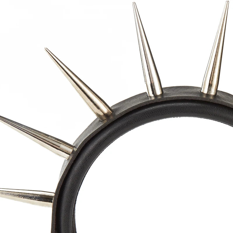 Élevez instantanément une tenue goth/punk avec ce serre-tête gainé de cuir PU et cerclé de pointes métalliques longues. Minimaliste de face, spectaculaire de profil, il crée une couronne d’épines qui capte la lumière et impose le style sur scène, en soirée cosplay ou au quotidien pour une touche rebelle.