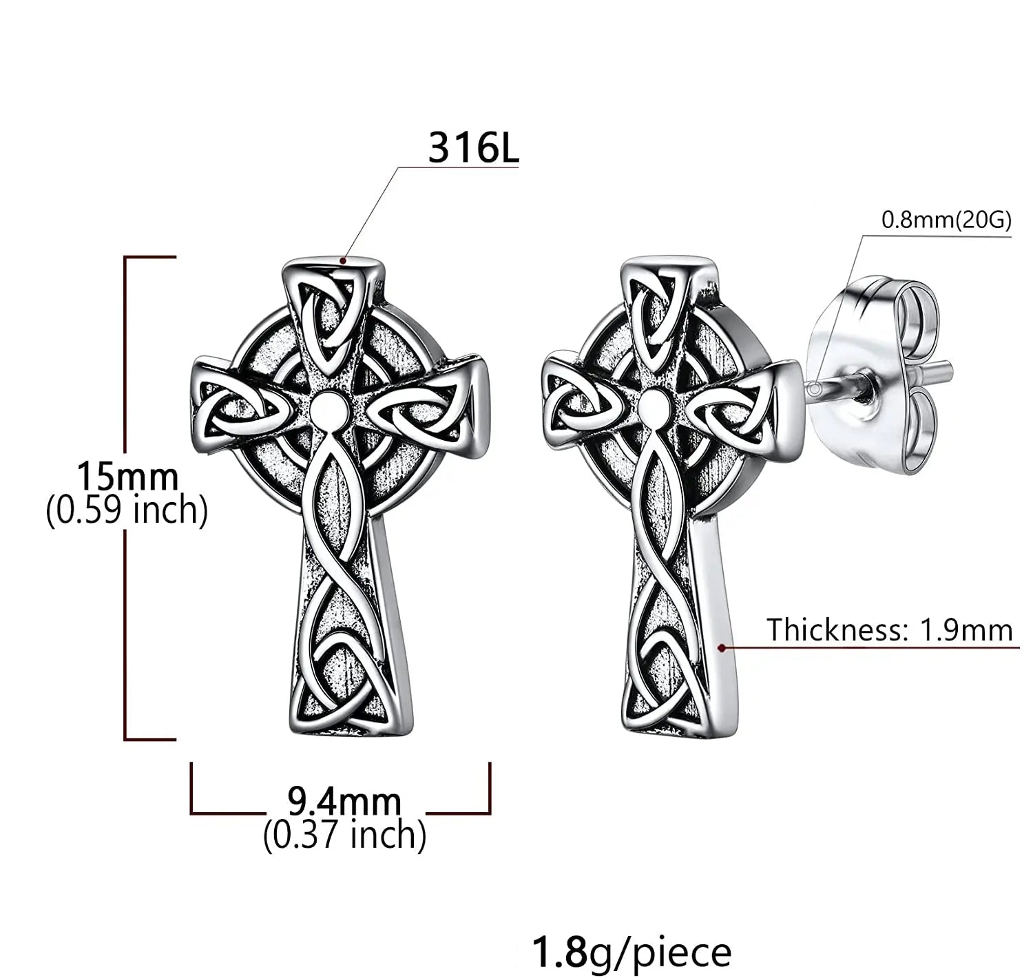 - Type : Puces d’oreilles (Stud) – Croix celtique