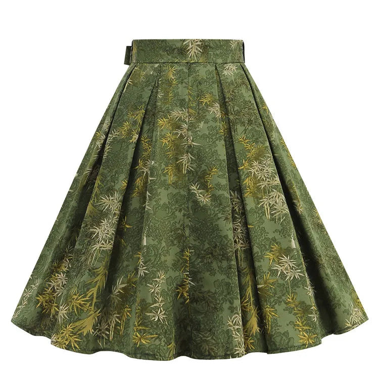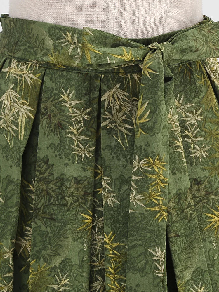 Jupe Style Victorienne Verte - imprimé botanique, plissée et ceinturée