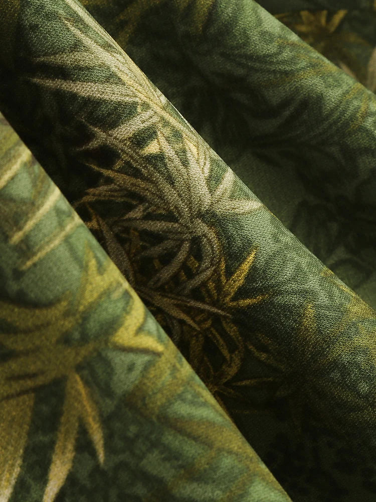 Son motif plantes & fleurs nuance de vert profond s’accorde aux saisons et illumine la garde-robe. Une valeur sûre pour les amateurs d’allure rétro et de silhouettes féminines.