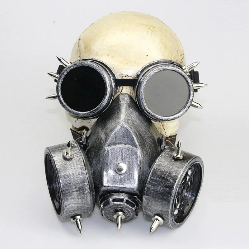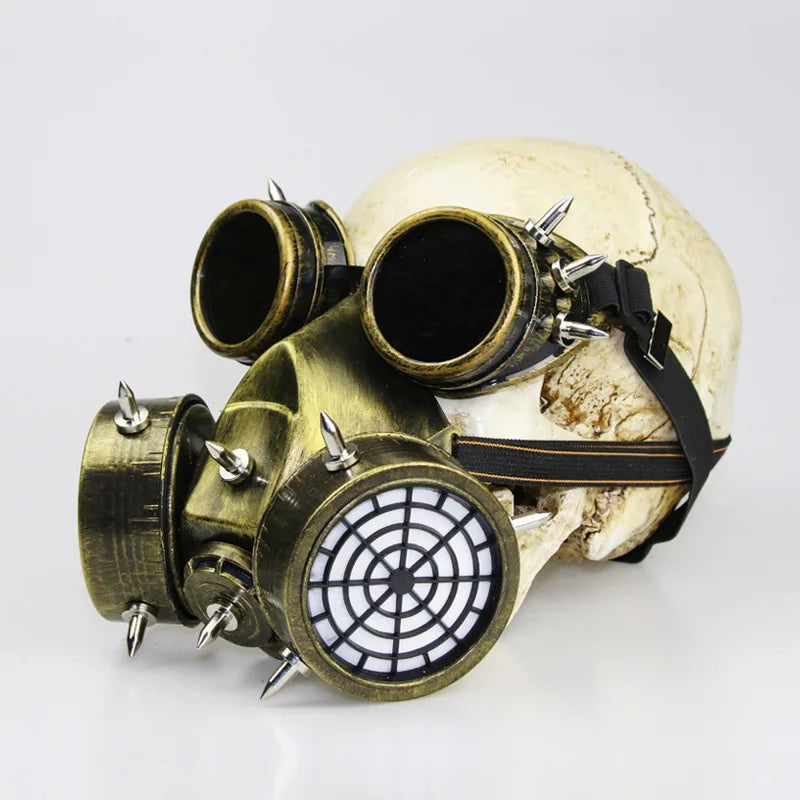 Le masque à gaz est accompagné de lunettes de soudeur pour un kit Atompunk détonant.