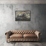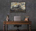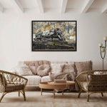 Notre tableau mural est une fenêtre ouverte sur l'âge d'or industriel. La représentation détaillée de la locomotive, imprimée en haute définition sur une toile de qualité, est encadrée élégamment, prête à être accrochée pour compléter votre décoration d'intérieur. Les teintes monochromes et le fond imitant un mur de briques défraîchi confèrent à cette pièce un caractère unique, idéal pour une ambiance zen et décorative.
