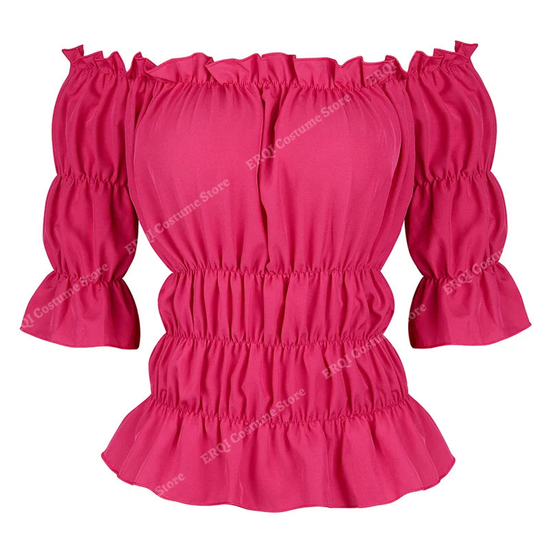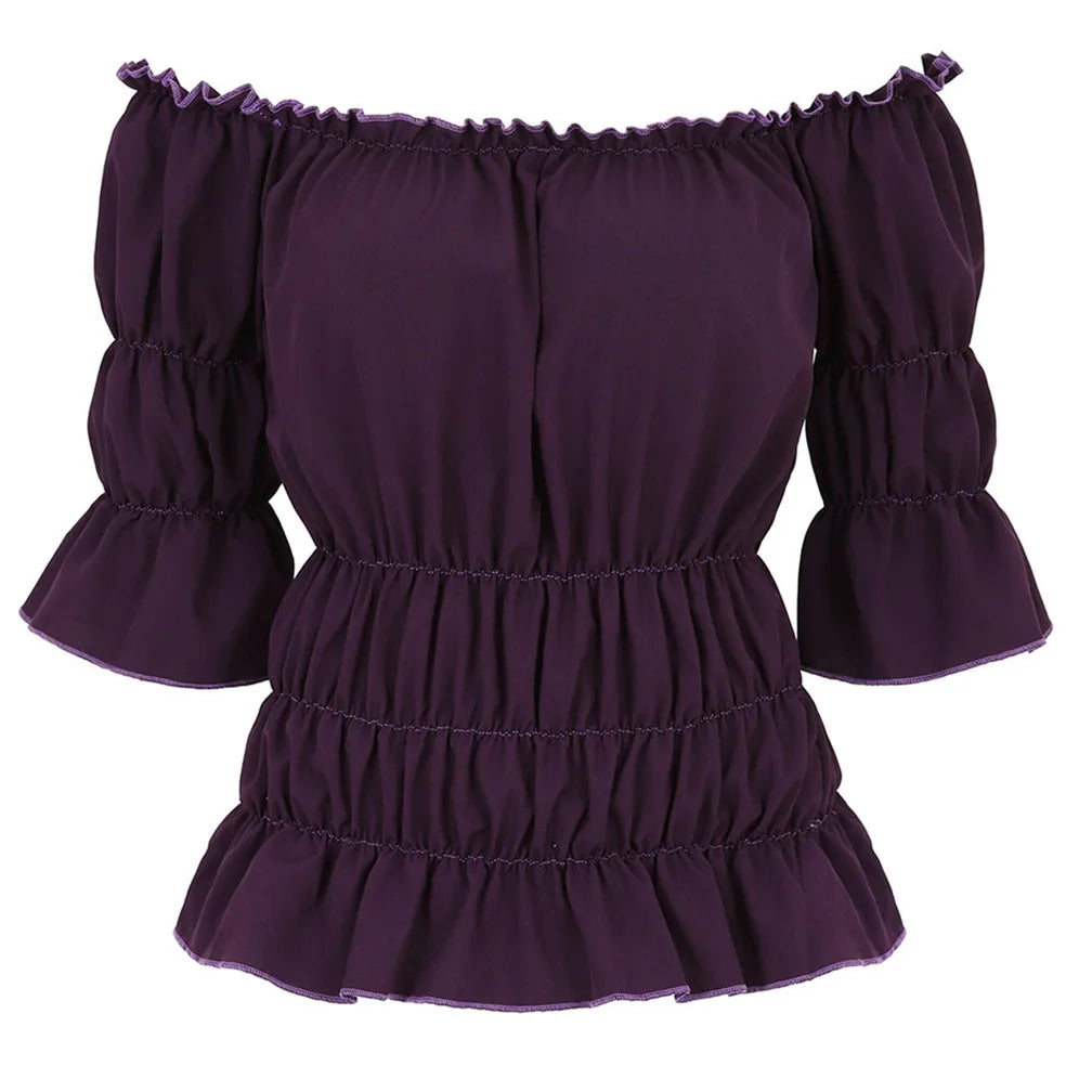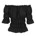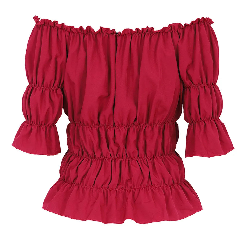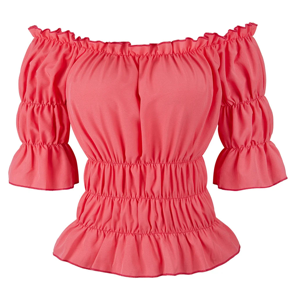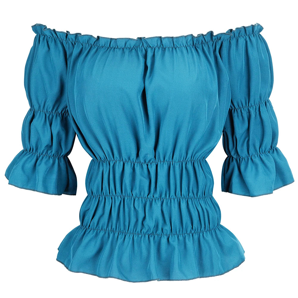 La Blouse aux Épaules Dénudées dans un style vintage léger et élégant.