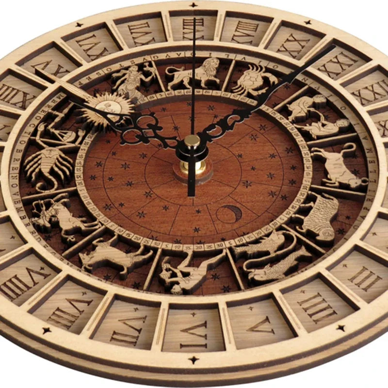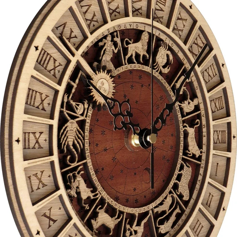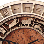 L' Horloge Astrologique se distingue par son design soigné et sa couleur rétro, avec des détails finement gravés représentant les signes du zodiaque, les phases lunaires, les planètes et les chiffres romains. Cette œuvre d'art sublimera votre intérieur en y apportant une touche de sophistication et d'élégance, tout en évoquant la magie et le mystère de l'astrologie.