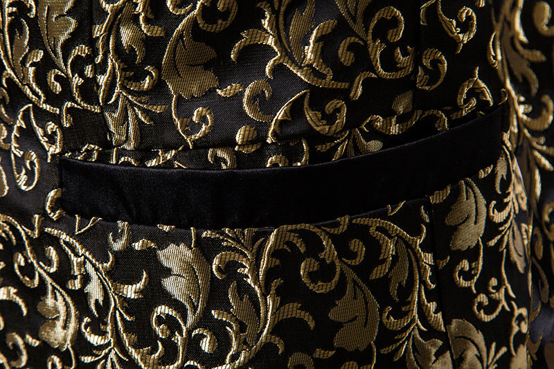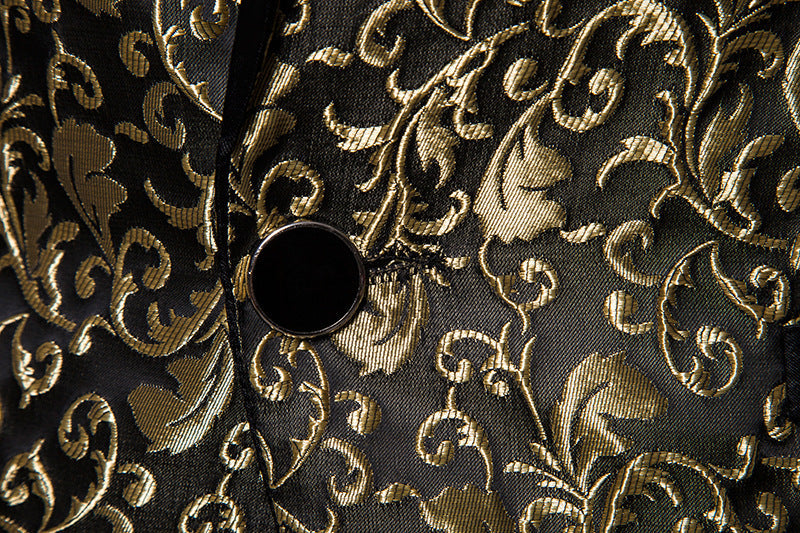 L' Homme paré d'une Broderie Dorée atteint une allure festive hors du temps.