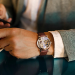 Le bracelet en cuir s'accorde parfaitement à ce design noble, rehaussant encore l'allure de cette montre squelette faite dans les règles de l'art.