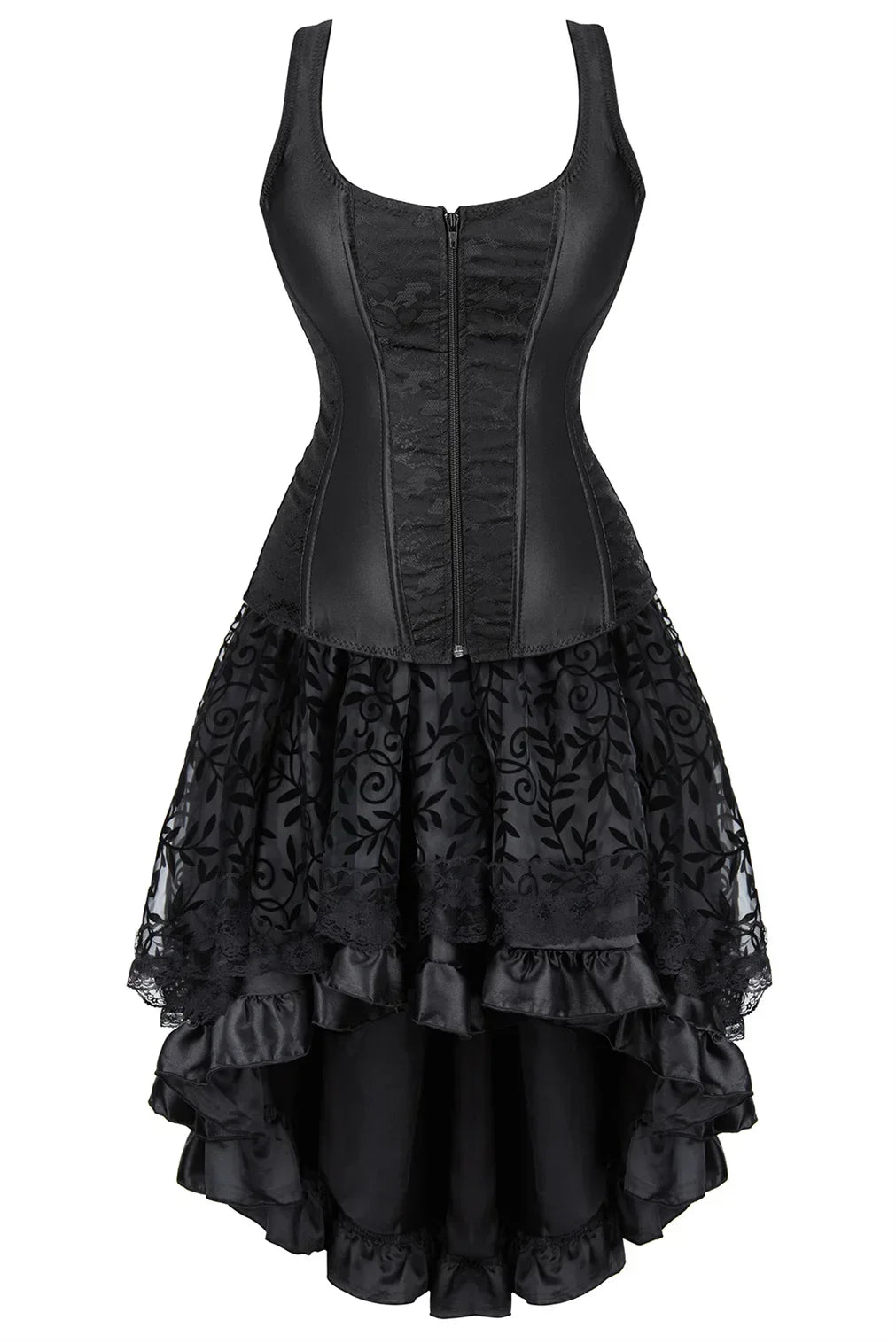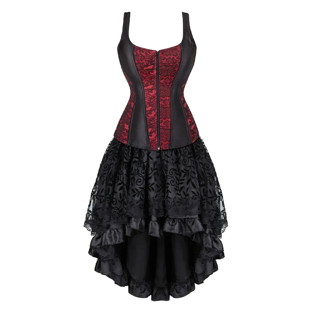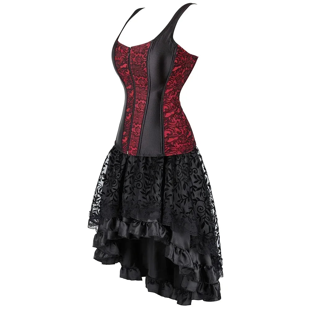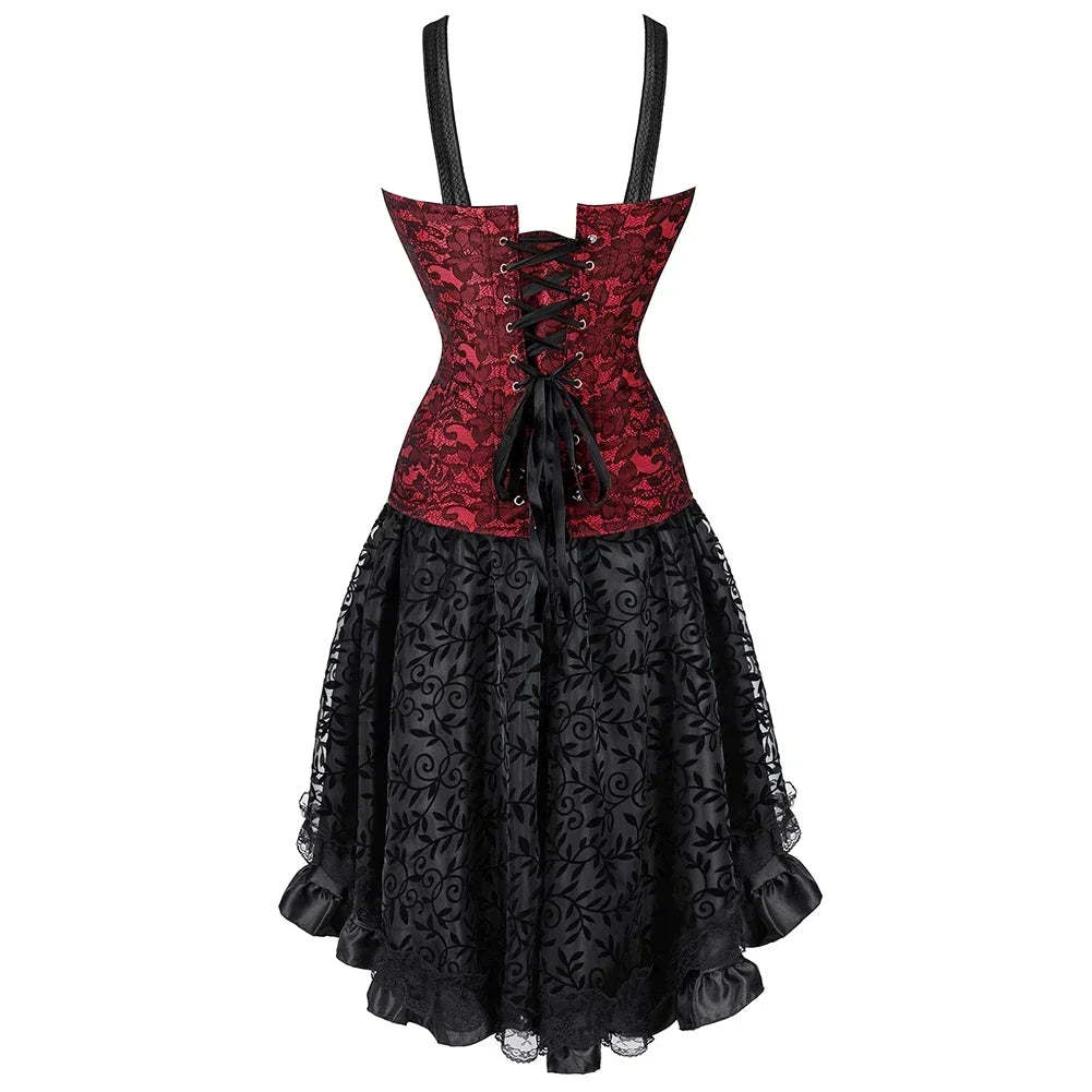Adopter une allure gothique & romantique proche du burlesque. Sublimez votre décolleté de dentelle et affinez les courbes de vos hanches avec la partie bustier noir ajustable.