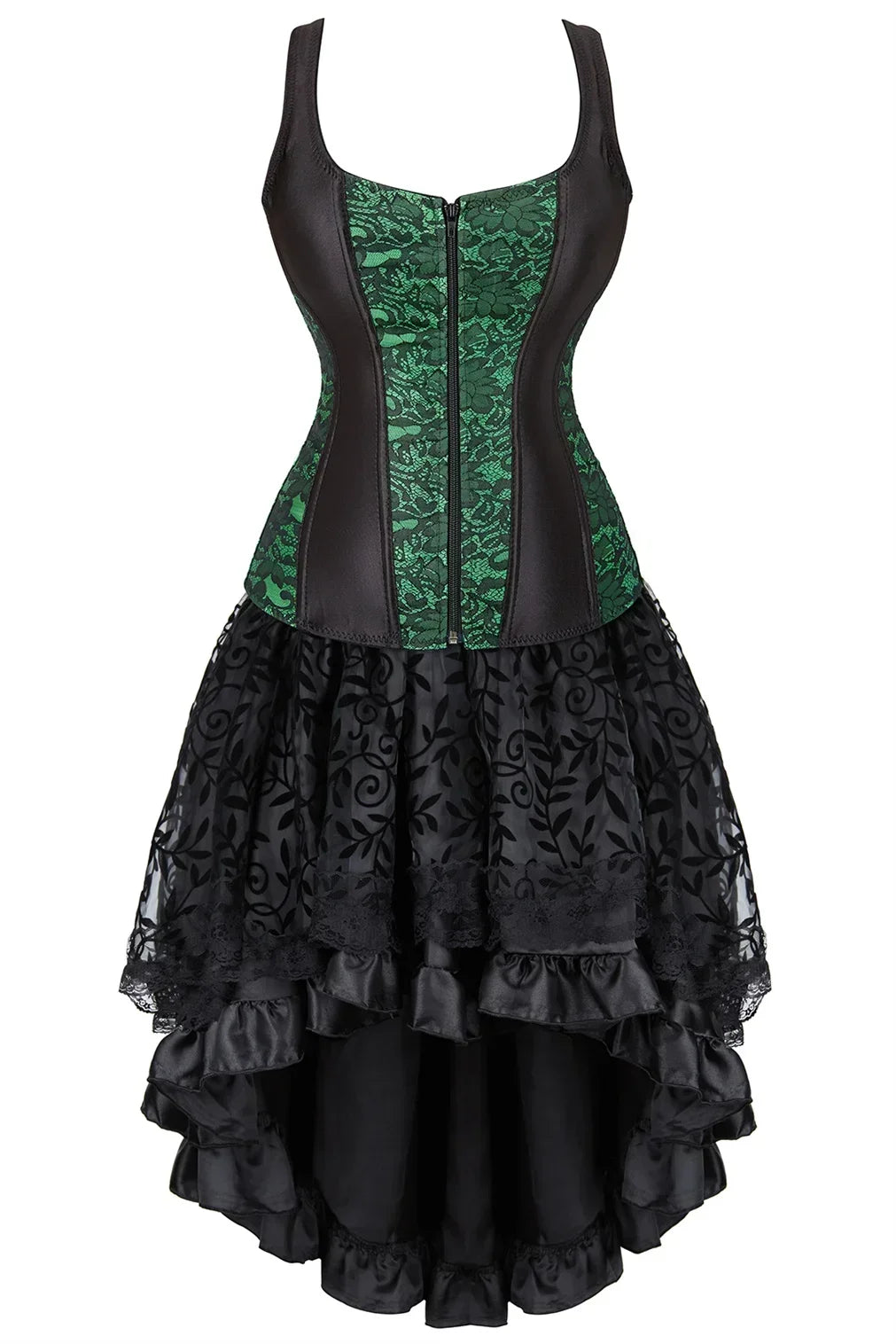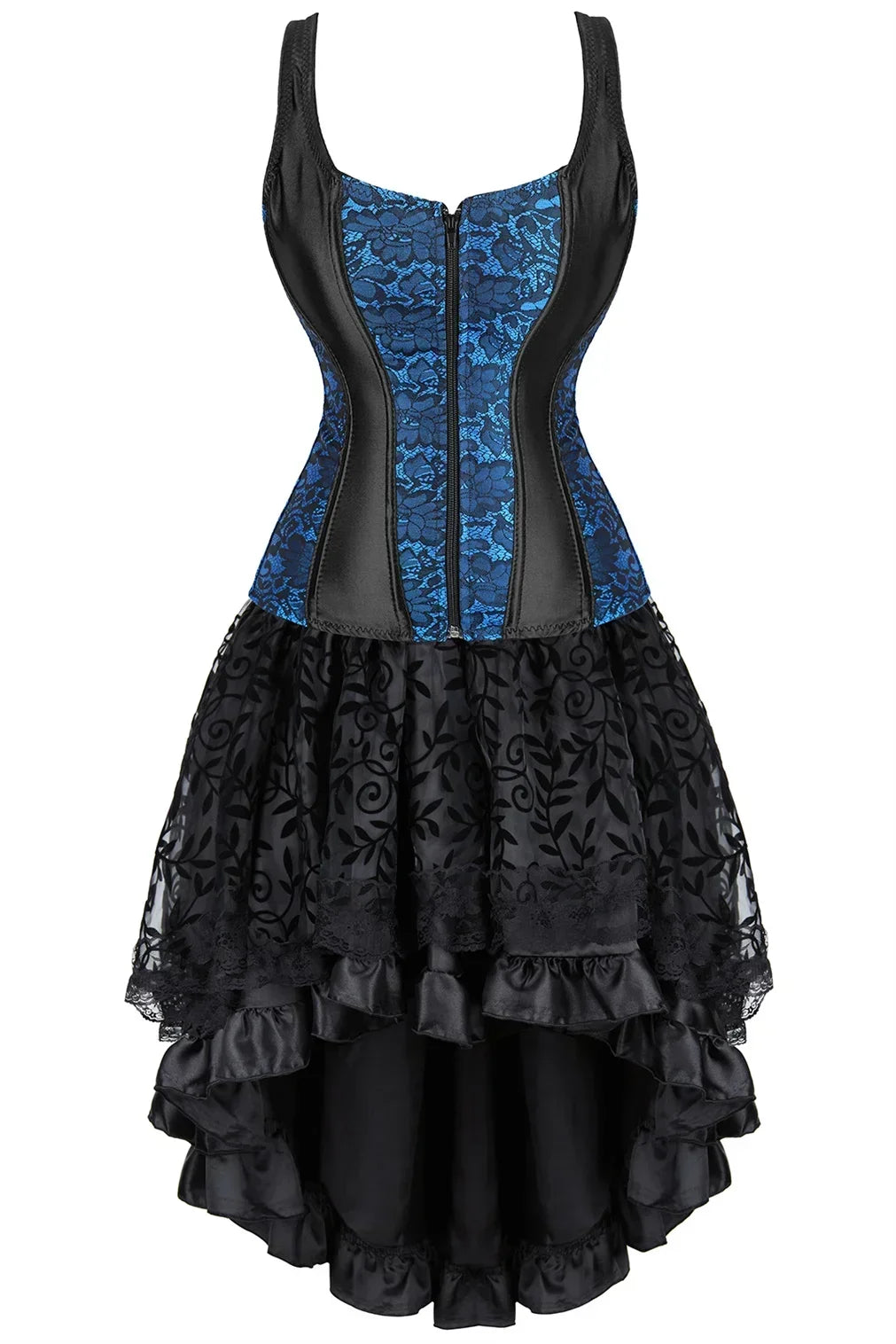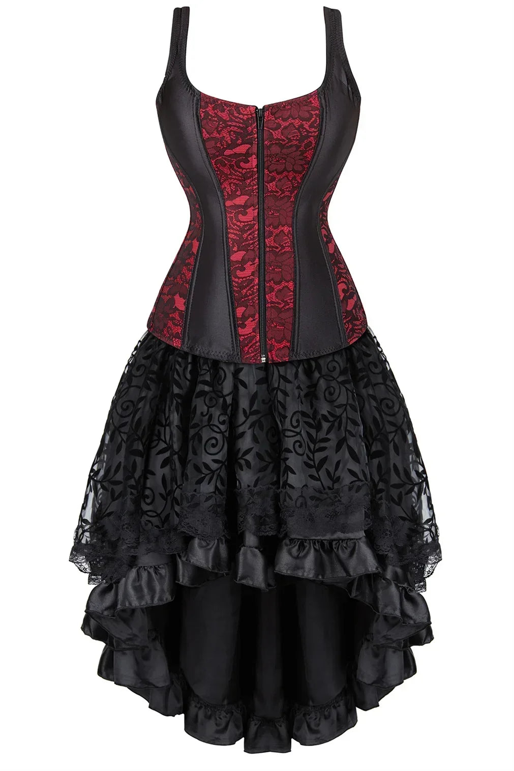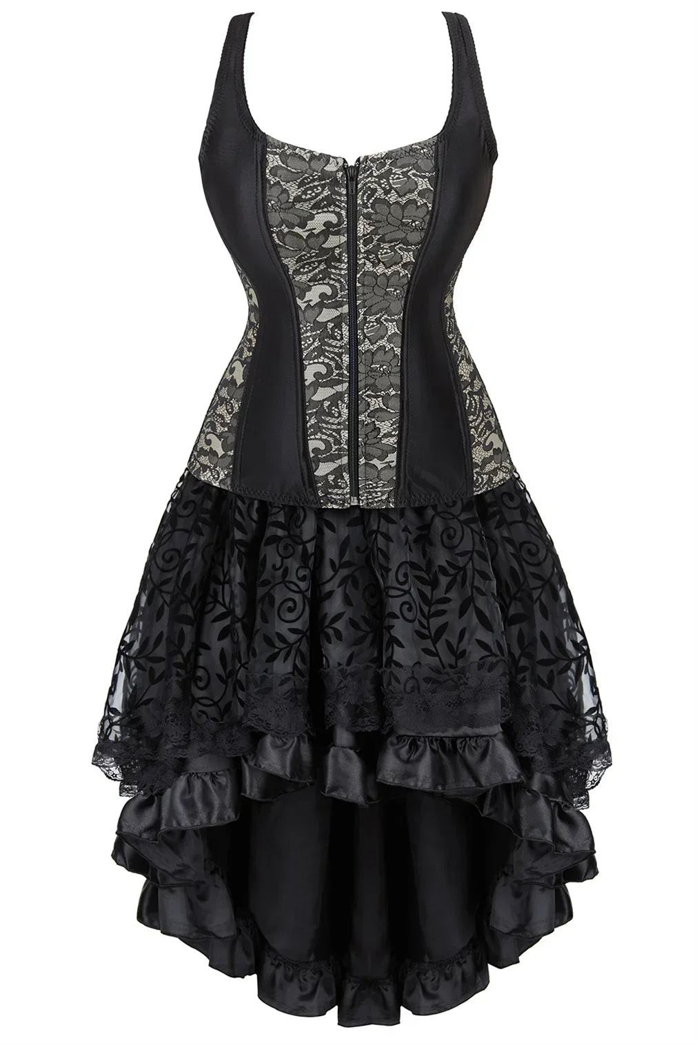 Adopter une allure gothique & romantique proche du burlesque. Sublimez votre décolleté de dentelle et affinez les courbes de vos hanches avec la partie bustier noir ajustable.