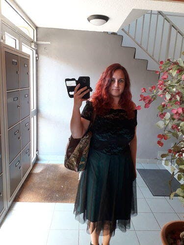 - Composition : Polyester avec dentelle.