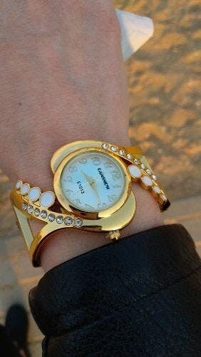 La Montre avec son Gros Bracelet serti de zircon qui allie modernité et ère victorienne.