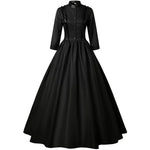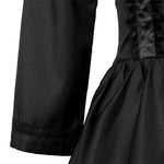 Cette robe de princesse noire incarne la quintessence de l'élégance gothique. Avec ses manches longues raffinées et son col montant délicatement boutonné, elle évoque un charme victorien tout en restant résolument moderne. La jupe évasée, ample et majestueuse, confère une allure royale, parfaite pour celles qui souhaitent se distinguer par un style unique et audacieux.