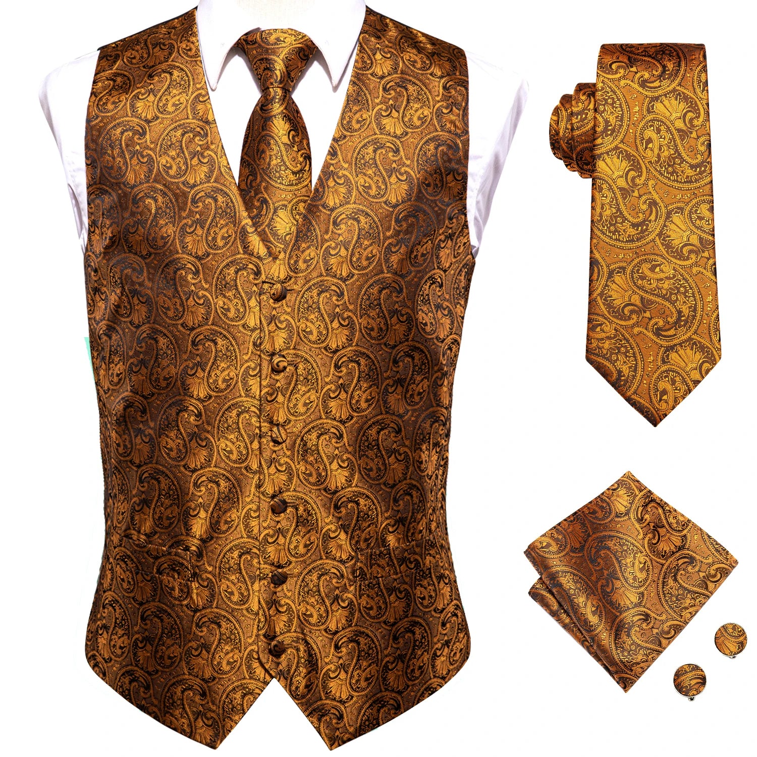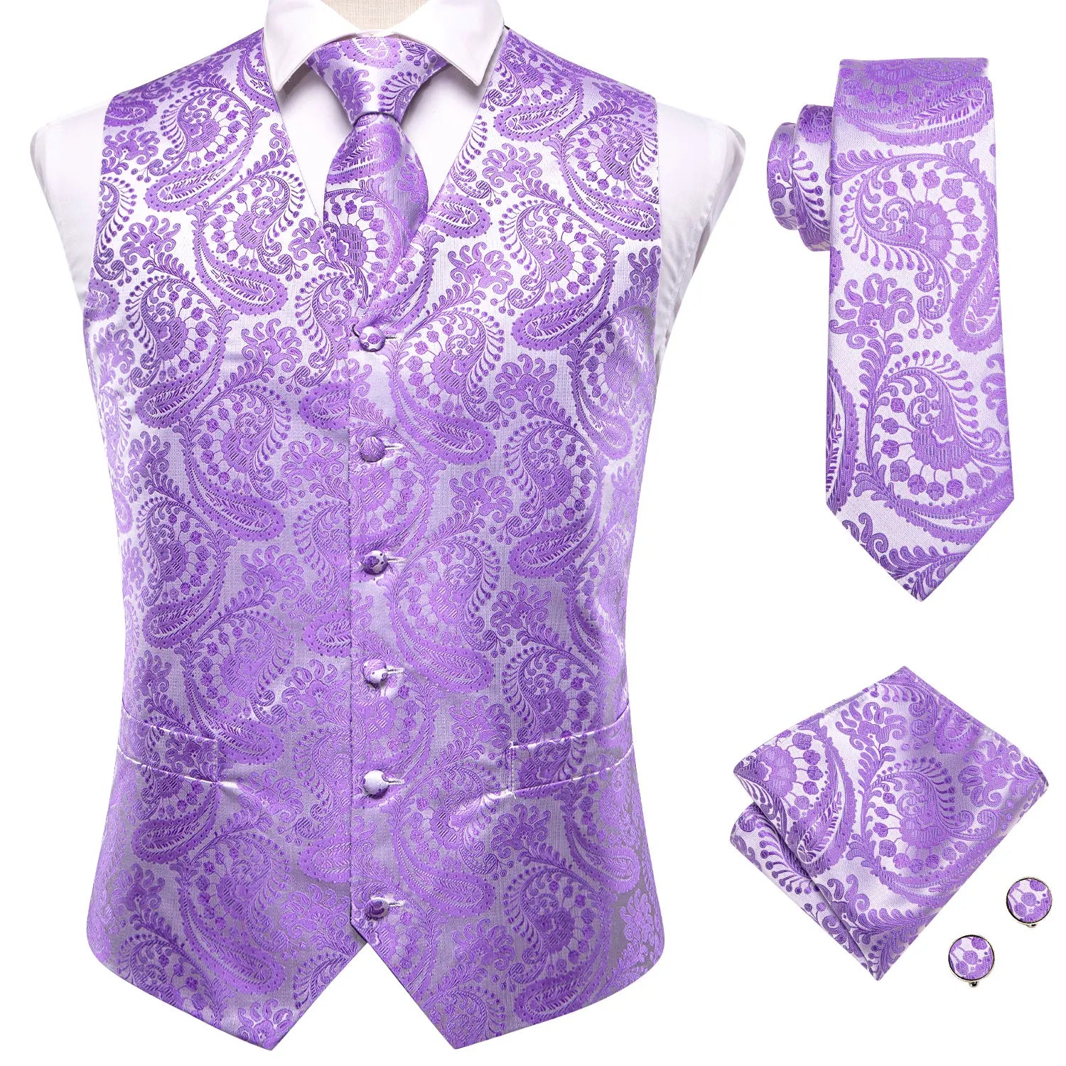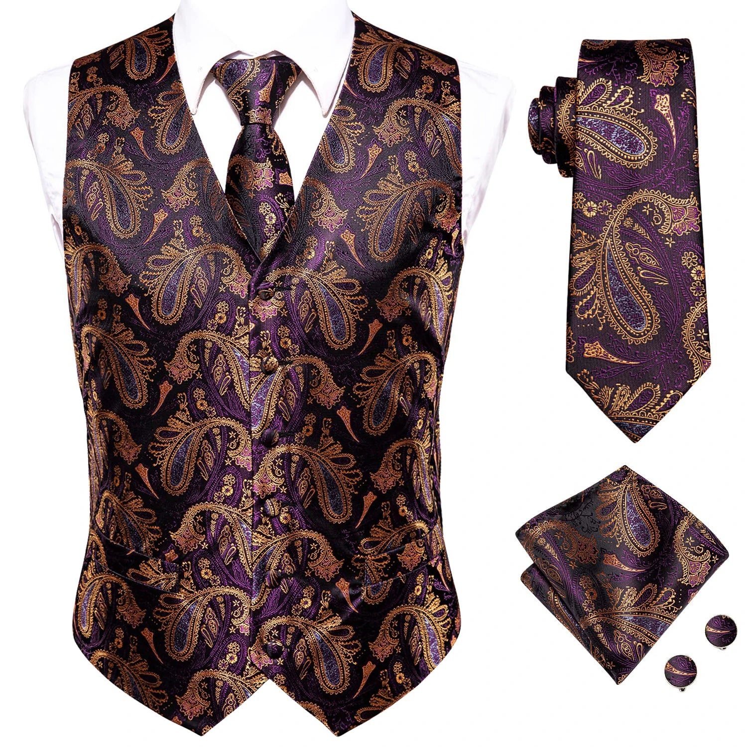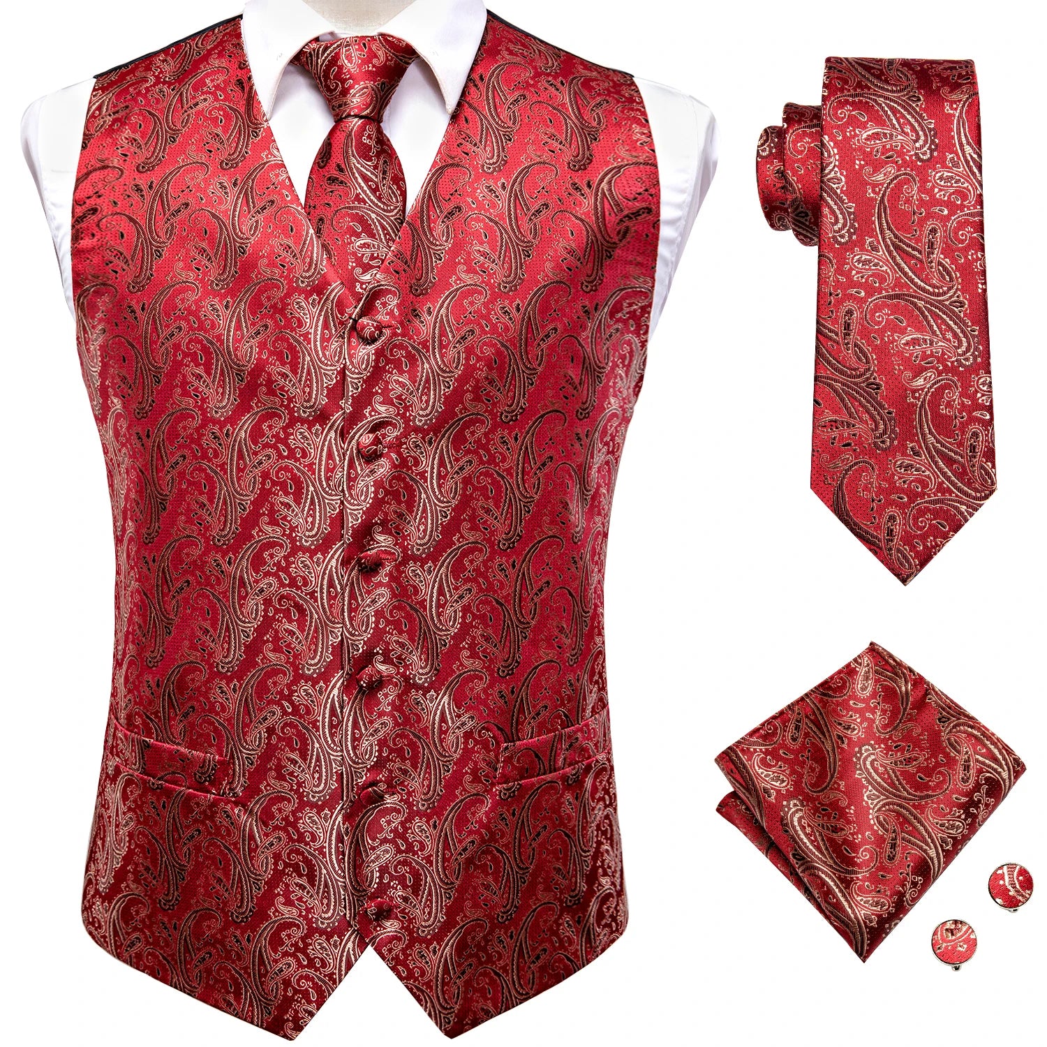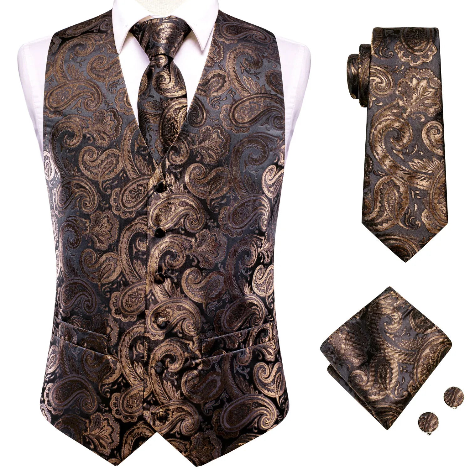 - Type : Gilet sans manche homme, cravate, boutons de manchettes et mouchoir de poche