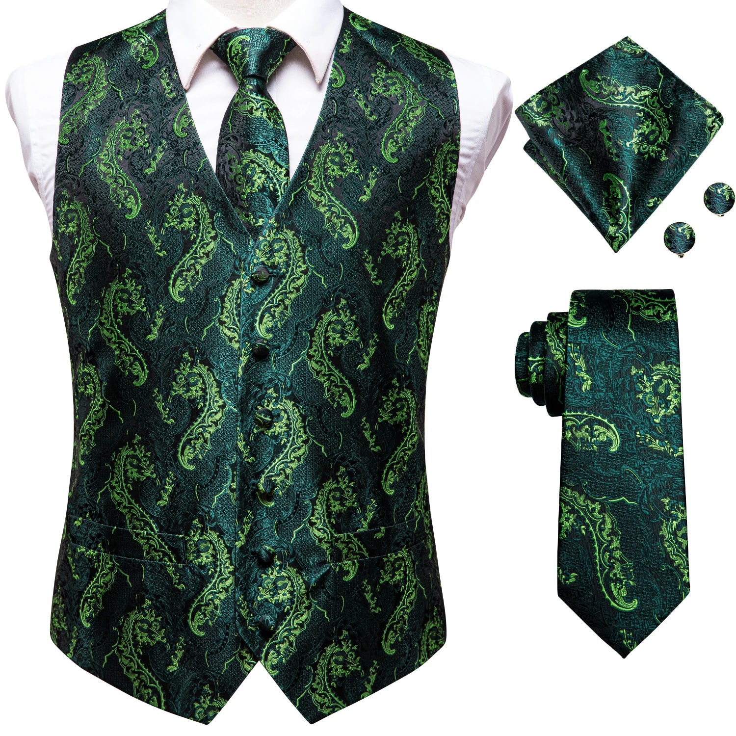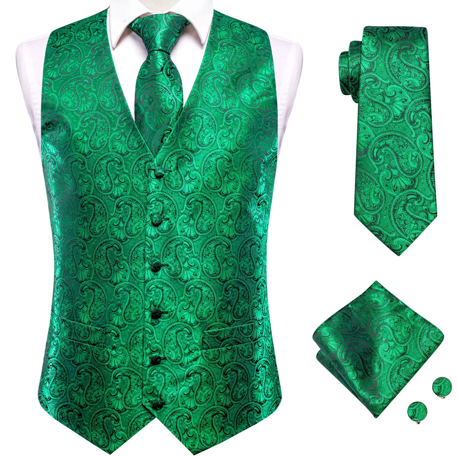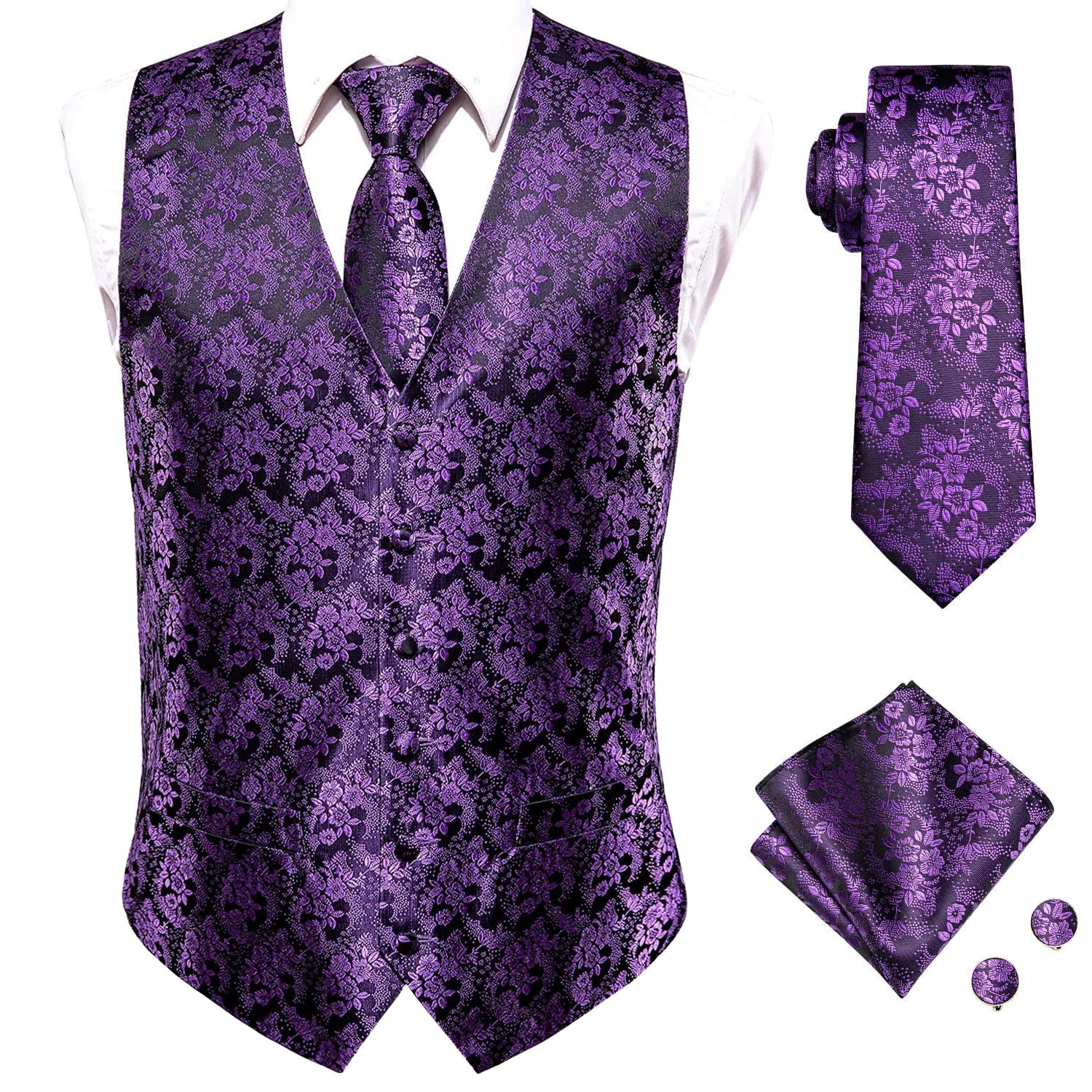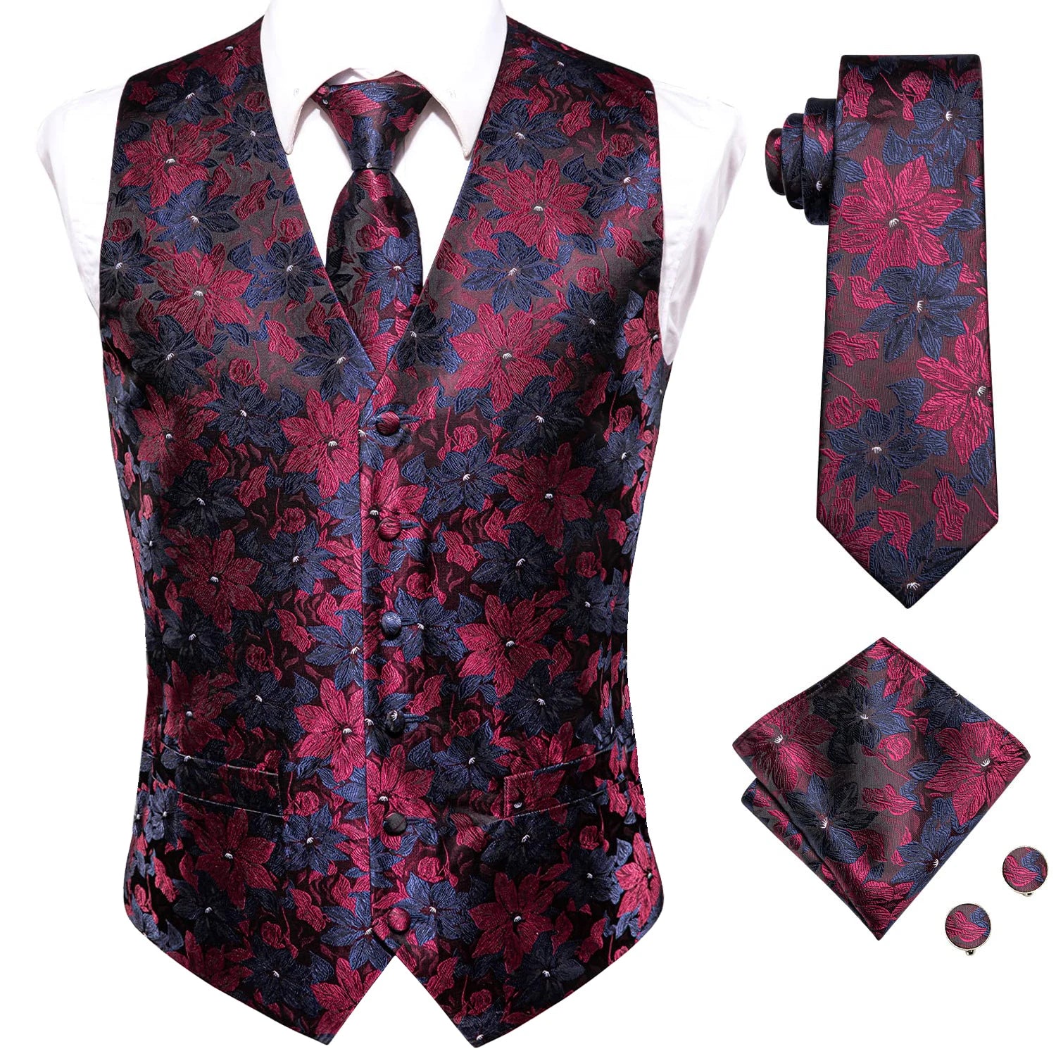 - Type : Gilet sans manche homme, cravate, boutons de manchettes et mouchoir de poche