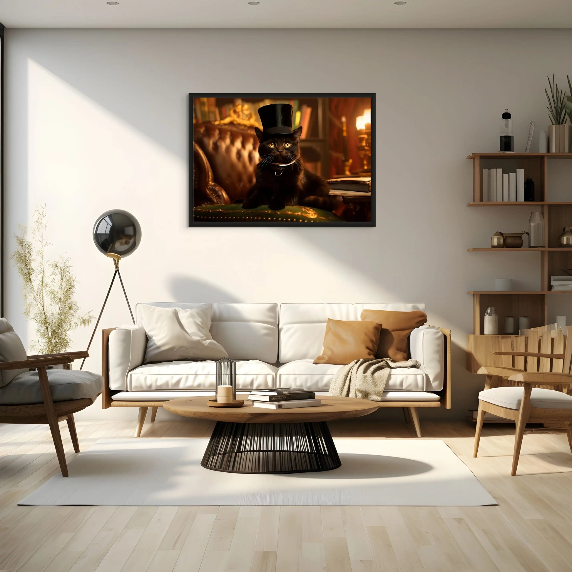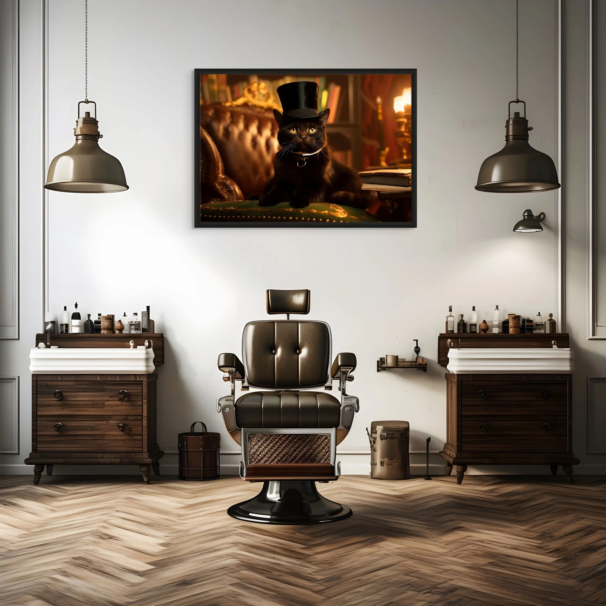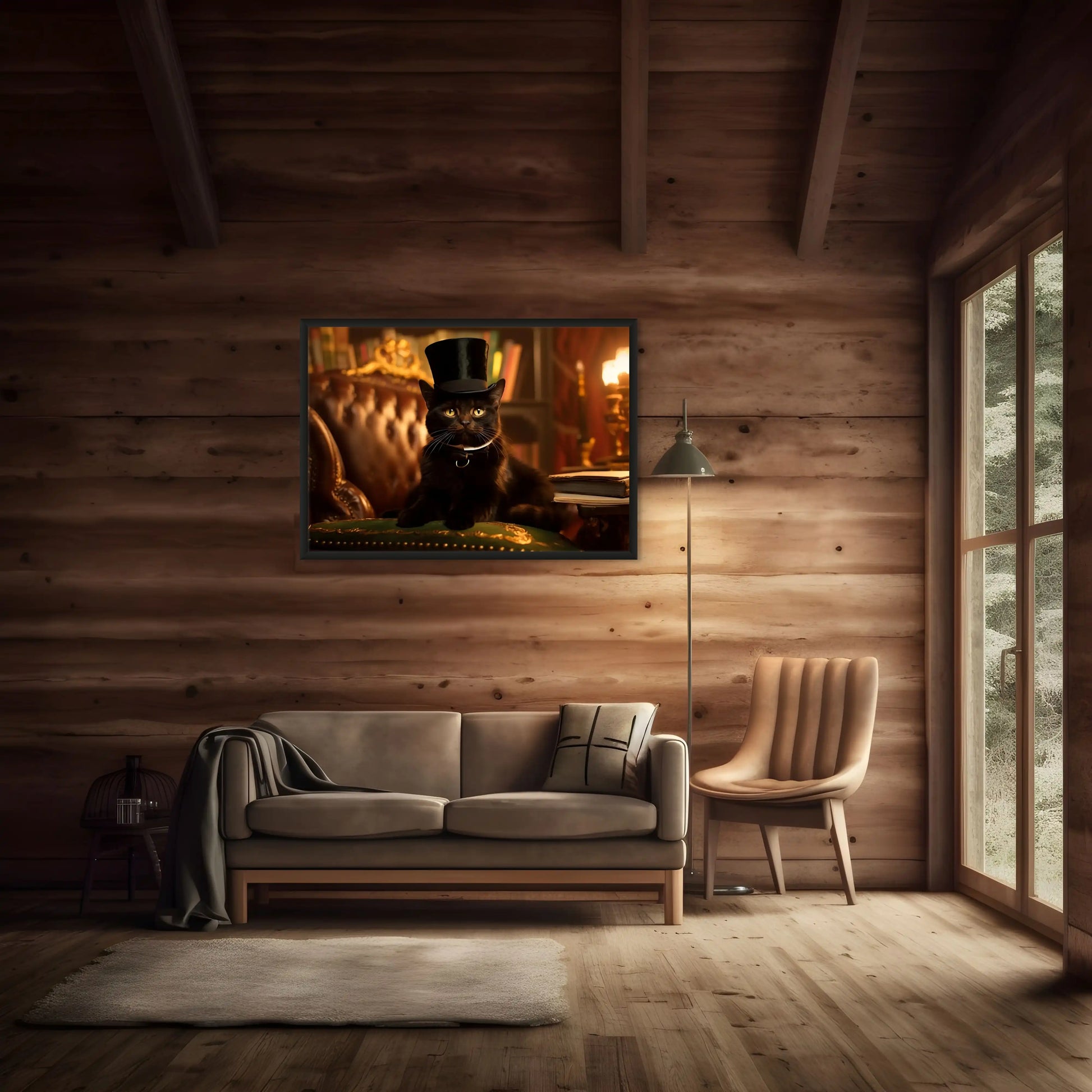 Ce tableau déco, plus qu'une simple peinture à l'huile, raconte une histoire. Avec le chat noir, symbole de mystère et de puissance, vêtu de manière aristocratique, il évoque des époques où l'art et la noblesse étaient inséparables. Ce tableau mural est la pièce idéale pour ajouter une touche contemporaine et de grandeur à votre décoration intérieure.