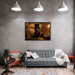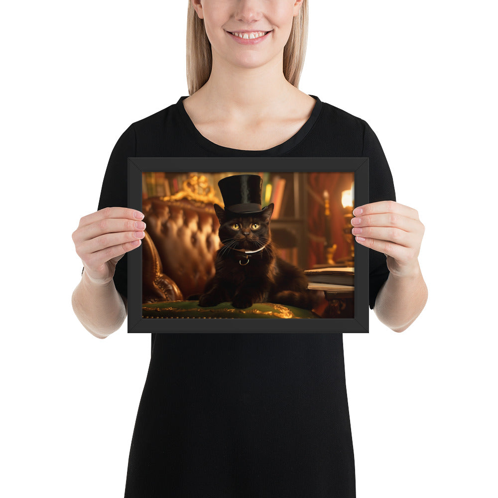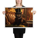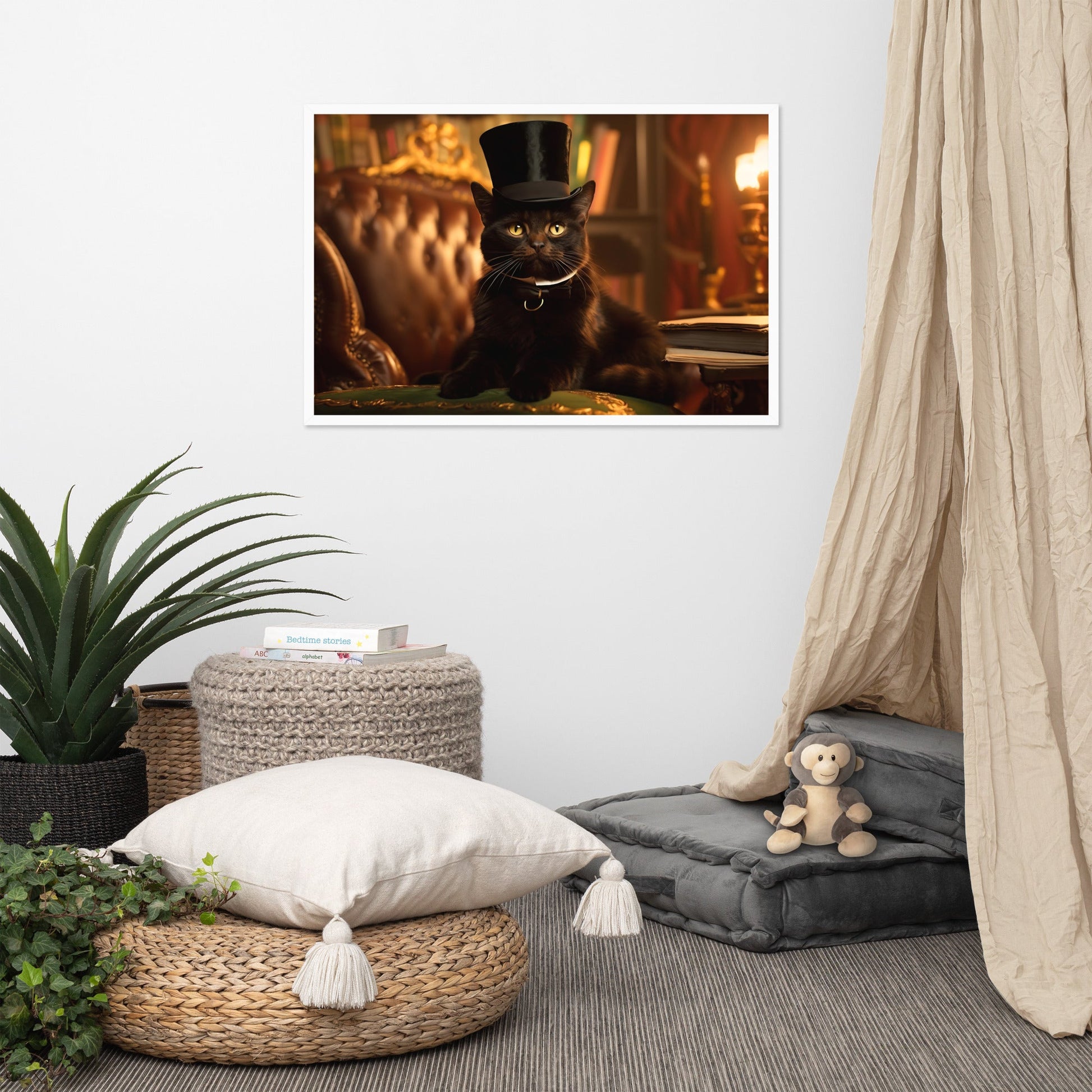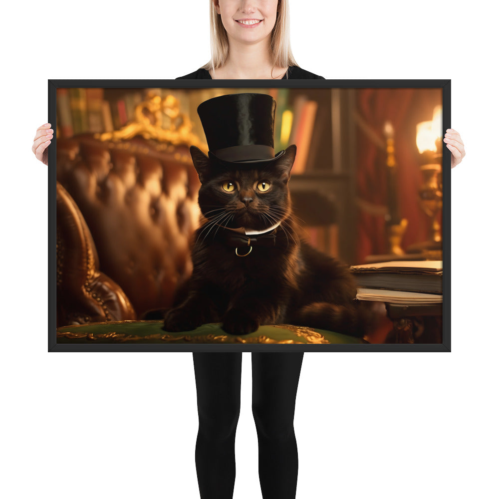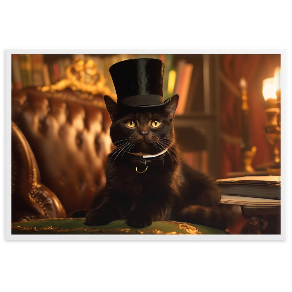 Ce tableau déco, plus qu'une simple peinture à l'huile, raconte une histoire. Avec le chat noir, symbole de mystère et de puissance, vêtu de manière aristocratique, il évoque des époques où l'art et la noblesse étaient inséparables. Ce tableau mural est la pièce idéale pour ajouter une touche contemporaine et de grandeur à votre décoration intérieure.