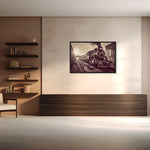 Ce chef-d'œuvre mural, imprimé en haute définition sur un papier à grammage fin, capte l'essence picturale d'une locomotive historique. Monté sur un châssis en bois robuste, sa peinture en noir et blanc évoque une époque révolue, apportant une touche zen à votre décoration d'intérieur.