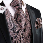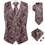 Notre gilet marron est orné de motifs cachemire sophistiqués, évoquant les dessins complexes des tapisseries de l'ère victorienne. Les nuances de cuivre et de bronze se marient harmonieusement sur le fond sombre, reflétant un look vintage authentique. Chaque détail, des boutons de manchette ornés aux accessoires assortis, est conçu pour capturer l'attention et susciter l'admiration.