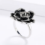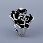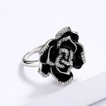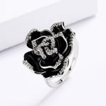 A refined and discreet vintage ring at the same time gives the illusion of a black rose .