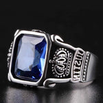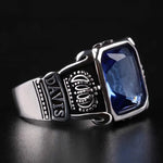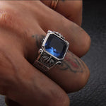 A Men's Ring similar to a signet ring set with a Blue Stone.