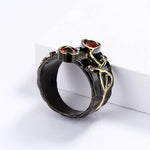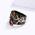 A Women's Ring in a neo-gothic style with its Black and Gold color, close to steampunk with its gilding and colored zircons.