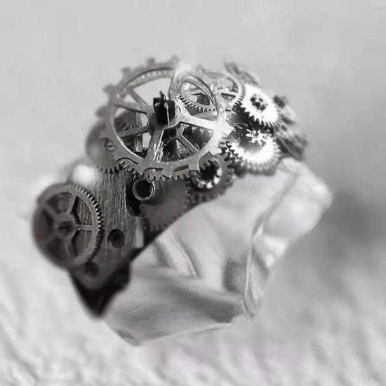 Bague Steampunk « Chrono-Gears » — Rouages mécaniques