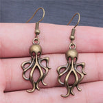 A legendary octopus at the end of the earlobe. Steampunk Octopus Earrings.
