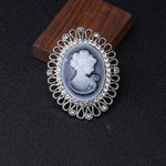 The Silver color of this Cameo Brooch allows you to match it with your cool-toned sets and outfits.