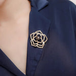Hang this Golden Brooch with an ocean blue stone in its center.