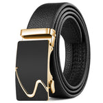 The Black Leather Belt with a finely crafted Gold Buckle for an exquisite steampunk design.