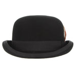 The Black Bowler Hat or derby for Women with its small embroidered feather.