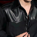 A Men's Shirt with a Collar and Shoulders Covered in Faux Leather.