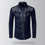 A men's cowboy shirt in a western punk style, a mix of wild west and steampunk.