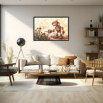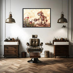 Enter the intriguing world of steampunk painting with our painting of a steampunk robot with mechanical details delicately integrated into a Victorian garden setting. This masterpiece is a true collector's item for art lovers combining Victorian aesthetics and futuristic visions.