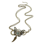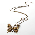 A metallic Butterfly Pendant with gears on its wings for a refreshing Steampunk look.