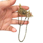 A hair jewel made of gears and chains in the purest retro-future style.
