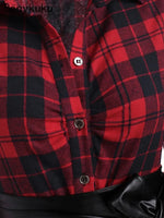 Avec son motif plaid et sa coupe chemise à col rabattu, cette robe grunge gothique joue l’équilibre parfait entre confort et caractère. La ceinture façon obi souligne la taille naturelle tandis que l’ourlet asymétrique “mouchoir” donne du mouvement à chaque pas. Boutonnage simple-breasted sur toute la hauteur, manches longues à patte de roulage, longueur genou : un essentiel streetwear qui passe du quotidien à la soirée sans effort.