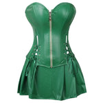 Entre scène et salon, ce corset steampunk overbust façon robe bustier dessine une taille hypnotique et un port altier. Sa jupe courte à pans latéraux accompagne le mouvement tandis que la fermeture éclair avant met en valeur la ligne du buste. Laçage ruban au dos pour un ajustement précis, empiècements gainants et finitions métalliques pour une allure gothique punk ultra-contemporaine.