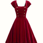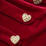 This sleeveless red velvet dress is the epitome of elegance and timeless charm. The sumptuous velvet, soft to the touch, gracefully envelops your figure, offering a look that is both sophisticated and seductive. The heart-shaped button details add a romantic touch, while the flared silhouette brings a feminine and graceful allure.