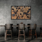 This wall chart, representing a wooden world map , is more than just a decorative element: it is an invitation to travel through your interior. Each continent, enriched with a gilding effect, stands out brilliantly on the background that imitates an aged wood essence, offering a look that is both rustic and refined.