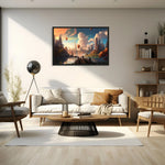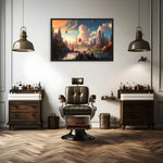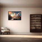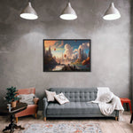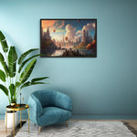 Decorate your wall with this magnificent retro-futuristic landscape painting.