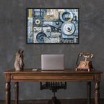 Discover an artistic immersion where industry meets abstraction. Our framed poster "Tableau Peinture Industrielle" is a celebration of the mechanical world, presented with a graphic elegance that will enrich your decor with its modern and aesthetic presence. Gears, pipes and architectural elements merge in a wall design that transforms industrial-era components into a contemporary work of art.