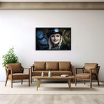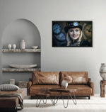 The influence of the steampunk literary genre, inspired by Verne's novels and the adventures of Sherlock Holmes, is clearly felt in this painting. Embrace the era of the industrial revolution with a futuristic touch, making this piece a creative and captivating addition to your space, ideal for gothic cosplay lovers and Victorian fantasy enthusiasts.