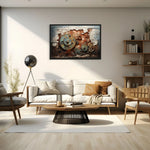 Take wall art to another level with our industrial style canvas, a true sculpture for your walls. Framed in a sturdy wooden frame, this contemporary canvas is a perfect combination of acrylic paint and digital printing. Thanks to its acrylic glass finish, it shines with a special luminosity that catches the eye and arouses admiration.
