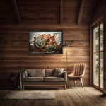 Your journey through our art gallery leads you to the Hot Air Balloon Painting . Let yourself be carried away by this aerial representation, a symbol of freedom and exploration. This painting is a call to adventure, inviting the mind to fly towards unknown horizons, while remaining anchored in the charm of the steampunk world.