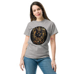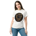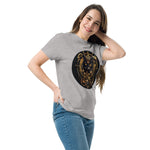 The short sleeve t-shirt features a high-quality detailed print, featuring a black cat surrounded by golden mechanisms, reminiscent of the very essence of steampunk. With its classic crew neck and comfortable fit, this t-shirt is perfect for a casual look or to add a touch of originality to your wardrobe . Available in several sizes and colors, this t-shirt adapts to all body types and all occasions.