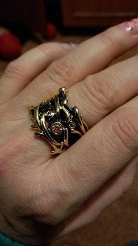 A Women's Ring in a neo-gothic style with its Black and Gold color, close to steampunk with its gilding and colored zircons.